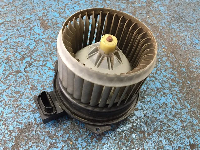 ブロアモーターを外したところです。モーターとファンが一体となっています。ファンの軸がぶれてファンとエアコン本体の接触で音がすることがあります。