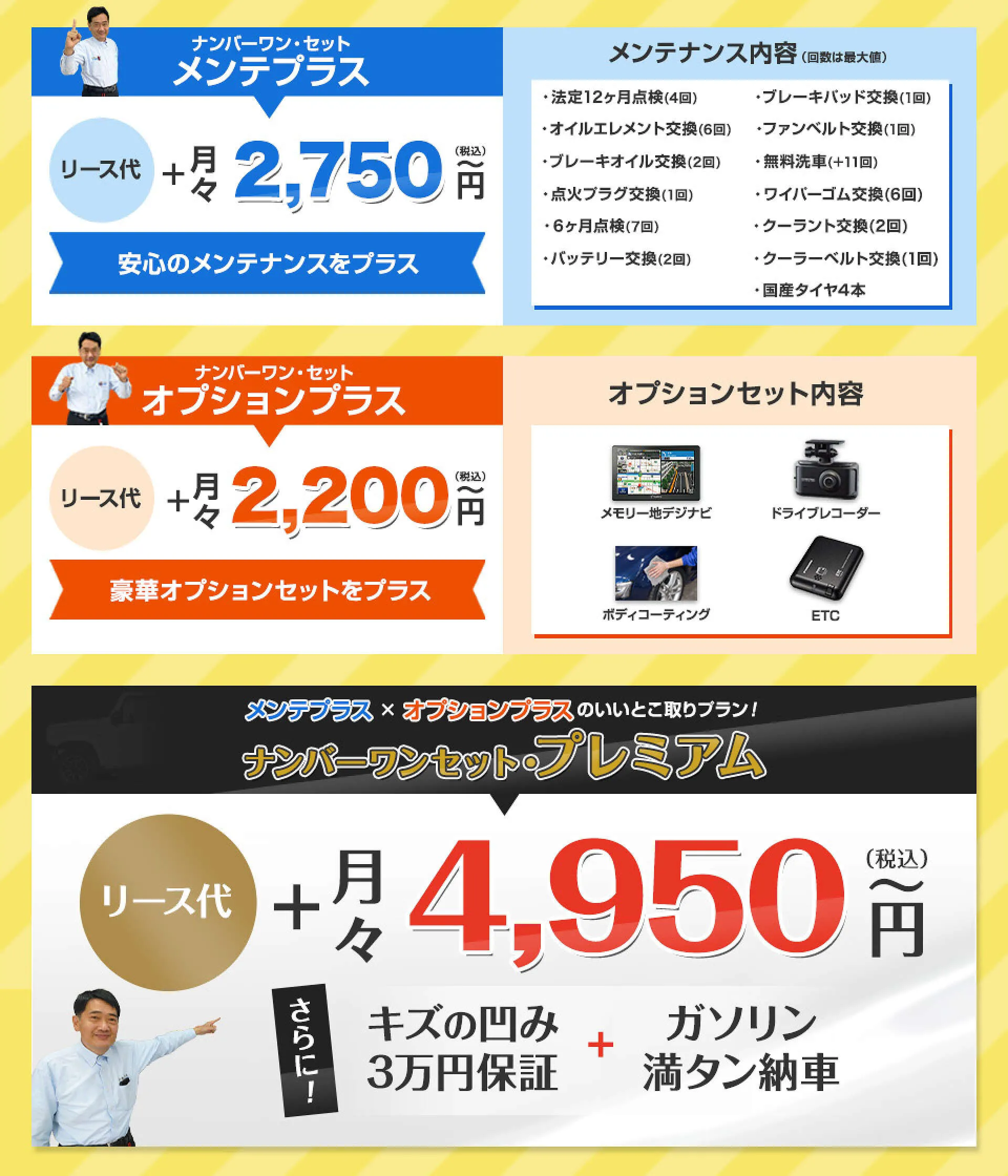 アフターメンテナンスを詳しく当店主力商品の月1,1万円マイカーリース。定額&低額で憧れの新車に乗ることができます。