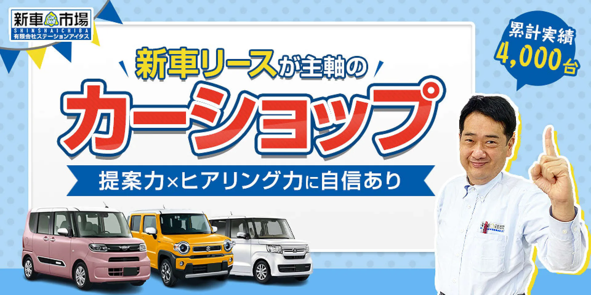 新車市場に加盟しているステーションアイタスでは、累計4,000台の運命の出会いのお手伝いをしてきました。お客様によって、ピッタリなお車やお支払い方法は様々です。お客様の笑顔の中で培った、提案力とヒアリング力でお客様1人1人に合ったベストなプランのみをお伝え。最近お喜びの声が多い新車リースにも力を入れており、ご希望の新車ライフを実現いたします。